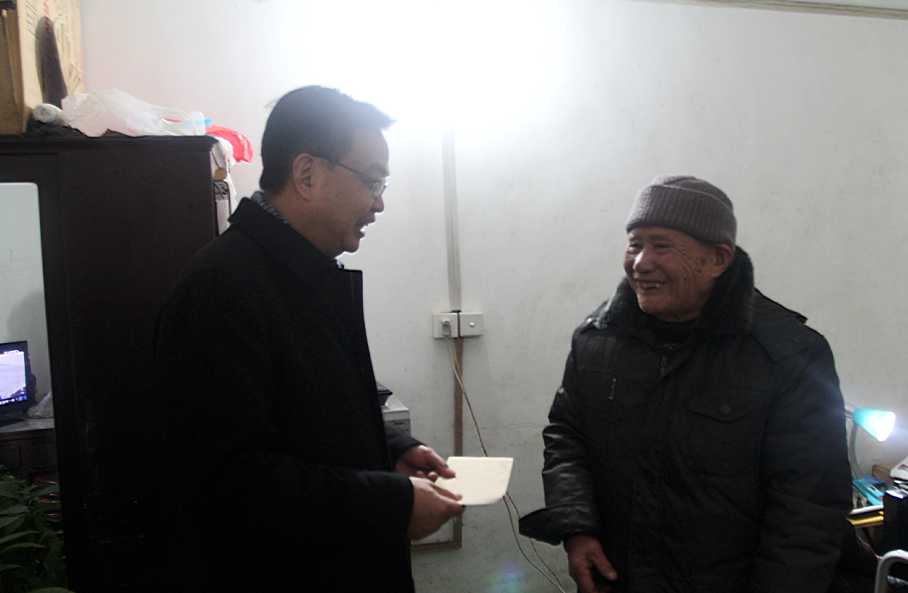 項主任詳細詢(xún)問(wèn)了黃老的身體狀況和生活情況,當了解到他90歲高齡,還照顧自己的老伴,一再叮囑他要注意身體。項主任和趙董事長(cháng)分別代表省國資委黨委和集團公司給黃老提前拜年,并送上了慰問(wèn)金。