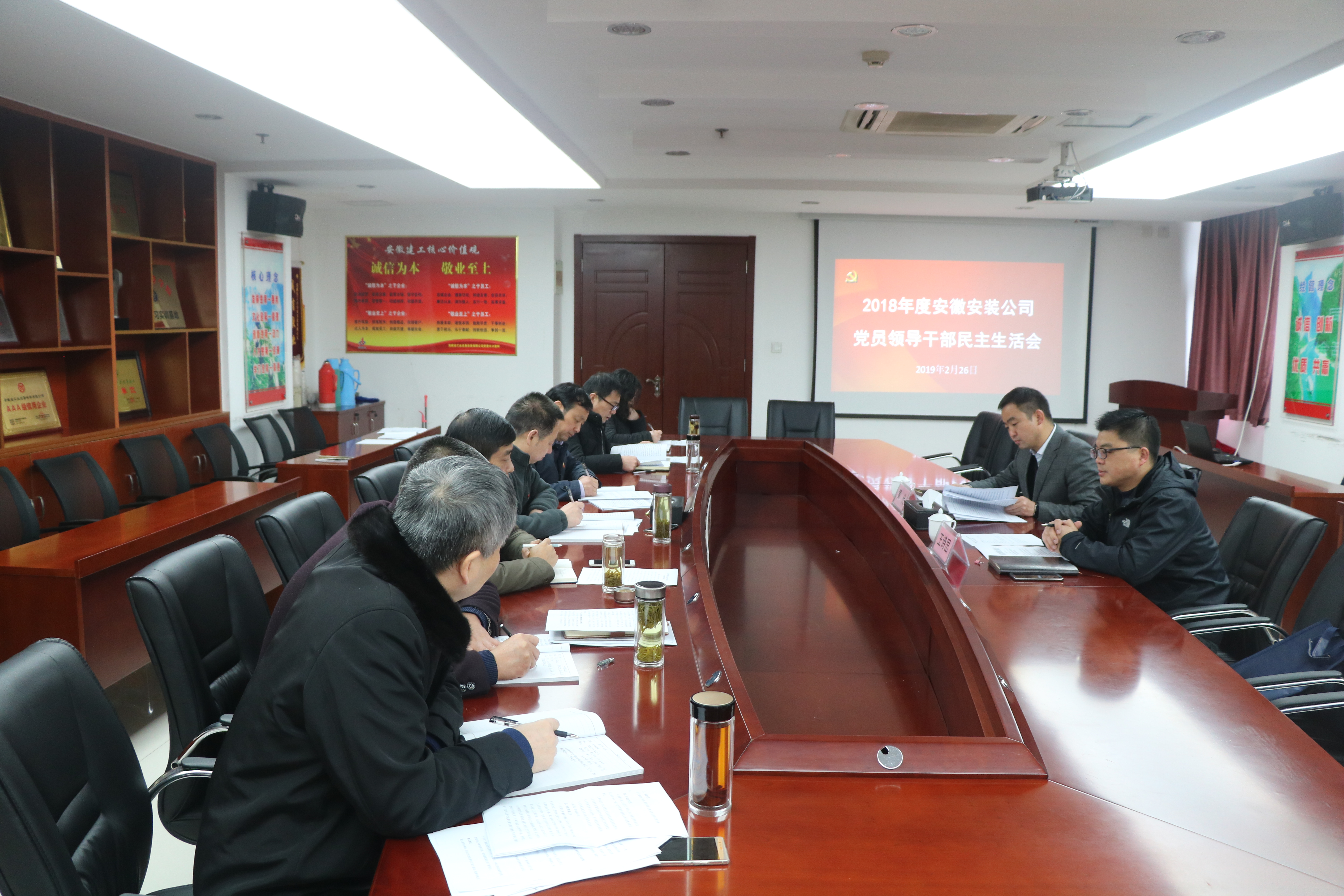 安徽安裝公司黨委對開(kāi)好這次民主生活會(huì )高度重視,認真研究,根據本次民主生活會(huì )的主題:強化創(chuàng )新理論武裝,樹(shù)牢“四個(gè)意識”,堅定“四個(gè)自信”,堅決做到“兩個(gè)維護”勇于擔當作為,以求真務(wù)實(shí)作風(fēng)堅決把黨中央決策部署落到實(shí)處。制定了工作方案,黨委理論學(xué)習中心組組織了專(zhuān)題學(xué)習研討,通過(guò)下基層走訪(fǎng)調研、談心談話(huà)、設置意見(jiàn)箱、發(fā)放征求意見(jiàn)表等形式廣泛征求意見(jiàn)建議。在此基礎上,公司領(lǐng)導班子及成員緊密聚焦主題,聯(lián)系“三查三問(wèn)”和思想工作具體事例,重點(diǎn)從思想政治、精神狀態(tài)、工作作風(fēng)等3個(gè)方面深入查擺突出問(wèn)題,認真撰寫(xiě)對照檢查材料,為開(kāi)好本次民主生活會(huì )做了充分準備。