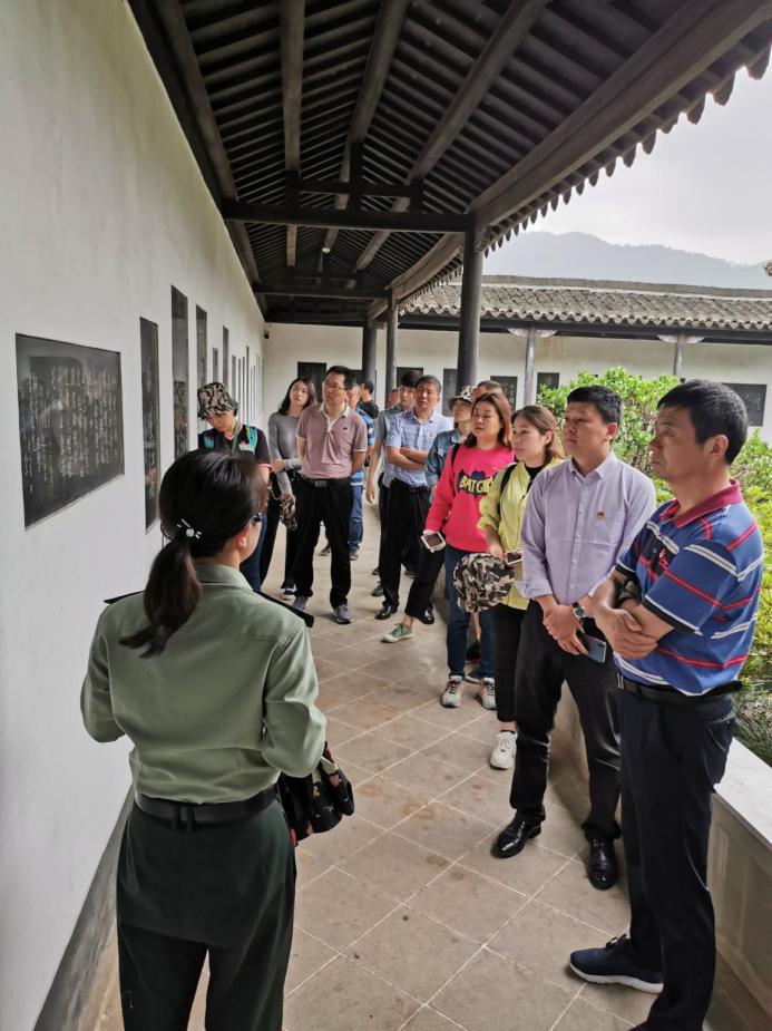 新四軍軍部舊址紀念館是全國保存最完整的革命舊址群之一,在這里,同志們感受了富有歷史底蘊的徽派古典建筑,也感悟著(zhù)偉大的鐵軍精神和革命精神。在講解員的帶領(lǐng)下,大家通過(guò)陳列的珍貴革命文物“追尋紅色印記”,在瞻仰先輩英勇事跡中“傳承紅色基因”。在葉挺銅像廣場(chǎng),同志們莊嚴的舉起右拳,重溫了入黨詩(shī)詞。通過(guò)參觀(guān)和宣誓,激發(fā)了同志們銘記黨的歷史,繼承先烈遺志,不忘初心,以黨的十九大精神為指引,充分發(fā)揚鐵軍精神和黨員的先鋒模范作用,艱苦奮斗,愛(ài)崗敬業(yè)。