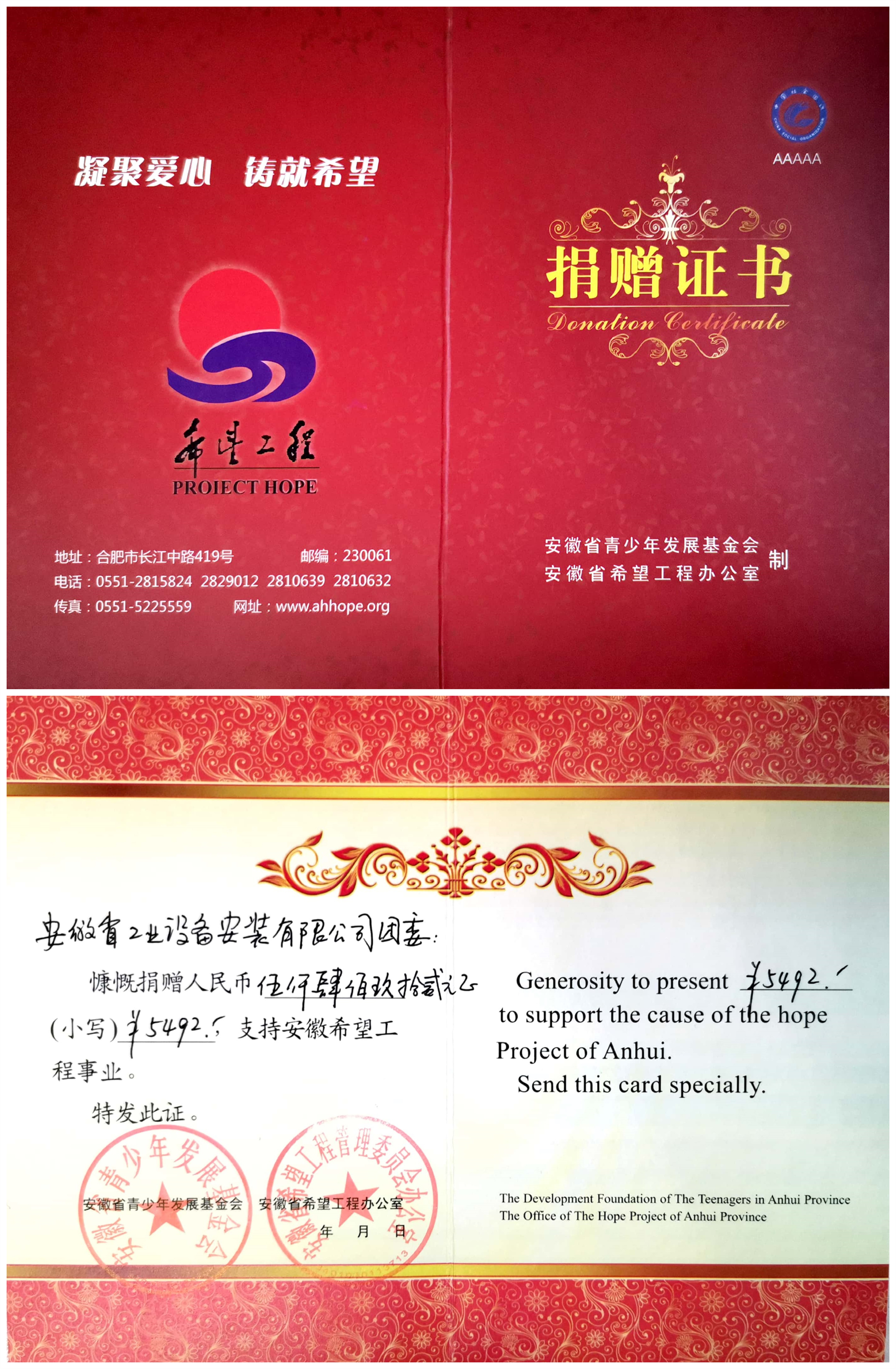 安徽安裝公司團委向安徽省青少年發(fā)展基金會(huì )捐款