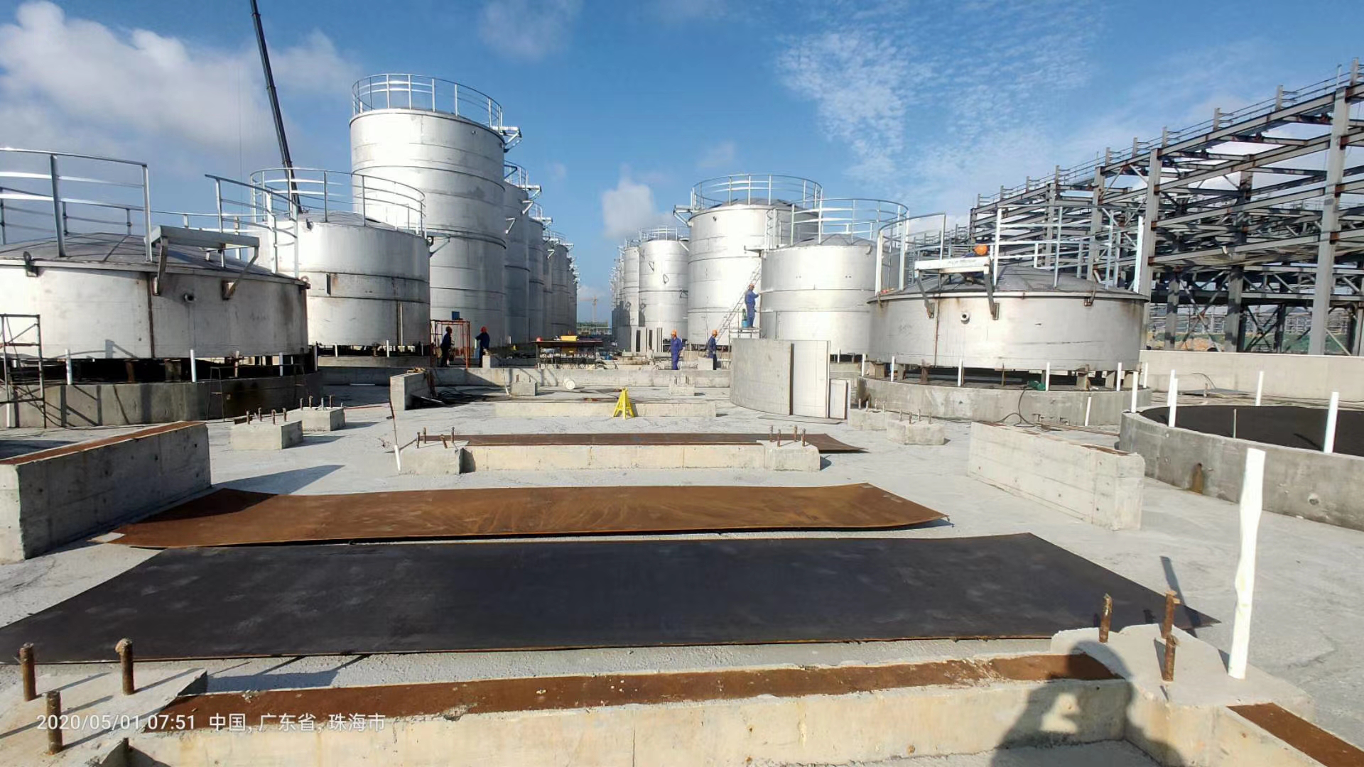 烈日下的工地上,機器轟鳴、人聲鼎沸,腳手架上,焊花四閃,車(chē)輛塔吊穿梭在項目現場(chǎng),大型儲物罐及管廊鋼結構框架已初具規模,珠海利隆項目部現場(chǎng)呈現出井然有序的繁忙景象。