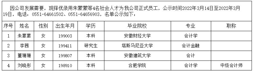 2022年擬錄用社會(huì )人才公示