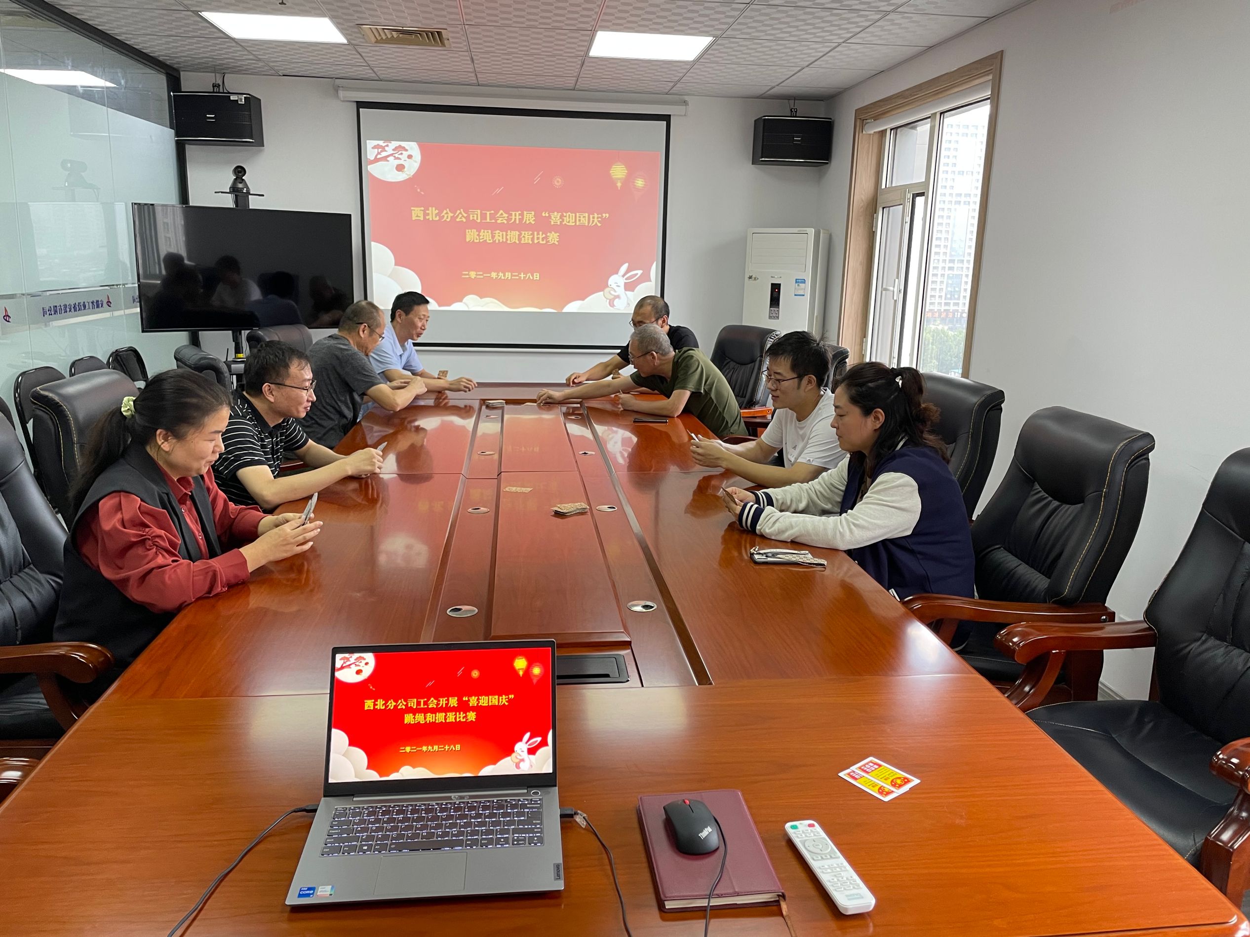 國慶佳節來(lái)臨之際,為了增強分公司員工的凝聚力與向心力,調動(dòng)員工的工作熱情,9月28日上午,西北分公司工會(huì )組織開(kāi)展“喜迎國慶”跳繩和摜蛋比賽,活動(dòng)由工會(huì )主席許洋主持,分公司全體員工參加比賽。