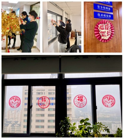 金牛送舊千家樂(lè ),玉虎迎新萬(wàn)戶(hù)歡,春節將至,為豐富職工文化生活,營(yíng)造歡樂(lè )、祥和、平安、喜慶、和諧的節日氣氛,合肥分公司工會(huì )提前準備了喜慶的新年裝飾、對聯(lián)、窗花等節慶用品,組織團員青年、機關(guān)員工將辦公室裝扮一新,并將濃濃年味帶到了各個(gè)項目部現場(chǎng)。