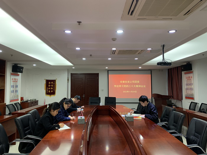 安徽安裝合肥分公司團支部組織團員青年召開(kāi)會(huì )議,傳達學(xué)習黨的二十大精神,圍繞如何發(fā)揮共青團組織的政治功能、做好黨的理論“青年化”闡釋開(kāi)展熱烈討論。