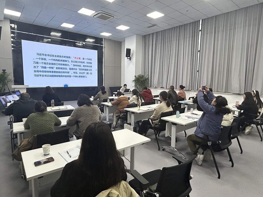 下午,綜合辦公室主任黃俊筠分別從題為《關(guān)于辦公室職能的幾點(diǎn)思考與認識》《接待與禮儀知識》《情緒管理》三個(gè)課程充分闡述了綜合辦人員應具備的專(zhuān)業(yè)能力與素養,并結合實(shí)際案例詳細分析綜合業(yè)務(wù)管理工作的關(guān)鍵要點(diǎn),同時(shí)對各單位綜合管理工作提出了更高的要求。