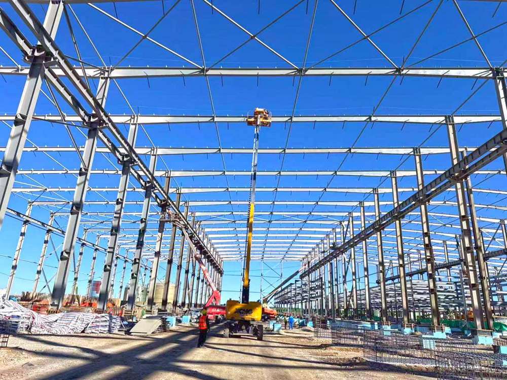 吊車(chē)的“長(cháng)臂”在空中伸展、曲臂車(chē)在鋼架間頻繁升降、工程車(chē)在場(chǎng)地上來(lái)回穿梭、工人們忙碌的身影隨處可見(jiàn),敲擊聲此起彼伏……針對當前重點(diǎn)建設任務(wù),項目部精細部署,組織施工力量、細化節點(diǎn)安排、調配人機資源,鼓足干勁、狠抓安全、緊扣進(jìn)度、全員發(fā)力,克服高海拔的特殊施工環(huán)境和偏遠地區的資源保障困難,項目部提出了“奮戰兩月 決勝年末”的戰斗口號,以“拼”的姿態(tài),“搶”的速度,全力沖刺12月底確保完成廠(chǎng)房封閉目標節點(diǎn)。