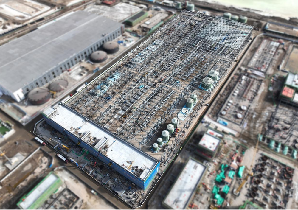 截至目前變電所主體結構封頂,二次結構完成一半;廠(chǎng)房鋼結構主體基本完成,圍護系統進(jìn)場(chǎng)施工,設備基礎全部完成。