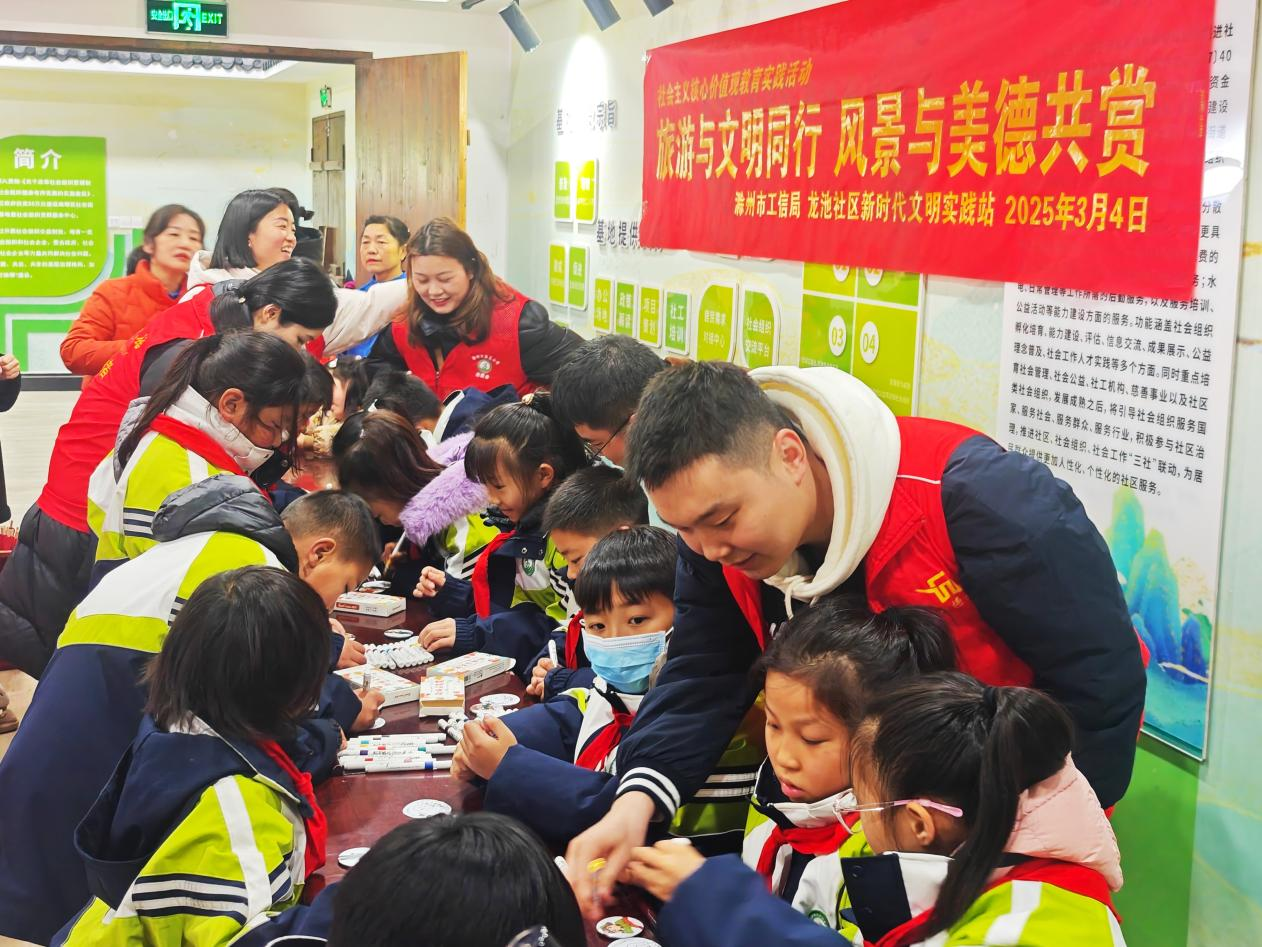 在活動(dòng)現場(chǎng),團員青年們化身“志愿導師”,帶領(lǐng)15名小學(xué)生共同制作“雷鋒紀念徽章”,小朋友們充分發(fā)揮想象力,努力描繪出自己心中的雷鋒,興高采烈地開(kāi)始了DIY雷鋒主題徽章的制作。從繪制、涂色到壓版,青年志愿者們一邊手把手指導孩子們完成徽章創(chuàng )作,一邊講述雷鋒同志助人為樂(lè )、無(wú)私奉獻的感人故事。一枚枚印有“向雷鋒同志學(xué)習”“紀念雷鋒”等字樣的徽章,在孩子們的巧手中誕生,成為傳承雷鋒精神的生動(dòng)載體,也在小朋友們心間種下了“雷鋒精神”的種子?!拔乙窭卒h叔叔一樣,多幫助同學(xué)!”一名小朋友佩戴著(zhù)親手制作的徽章,堅定地說(shuō)道。