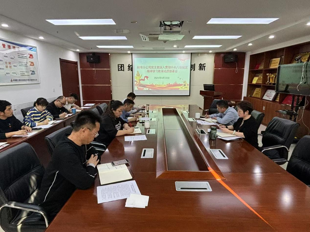 4月10日下午,建工安裝蚌埠分公司召開(kāi)深入貫徹中央八項規定精神學(xué)習教育動(dòng)員部署會(huì )。會(huì )議由黨支部副書(shū)記許素寒主持,分公司黨支部書(shū)記、經(jīng)理趙銘亮作動(dòng)員講話(huà)。