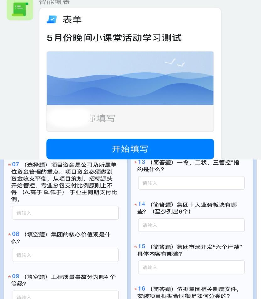 機關(guān)和各項目部學(xué)習現場(chǎng)、釘釘學(xué)習測試題填寫(xiě)