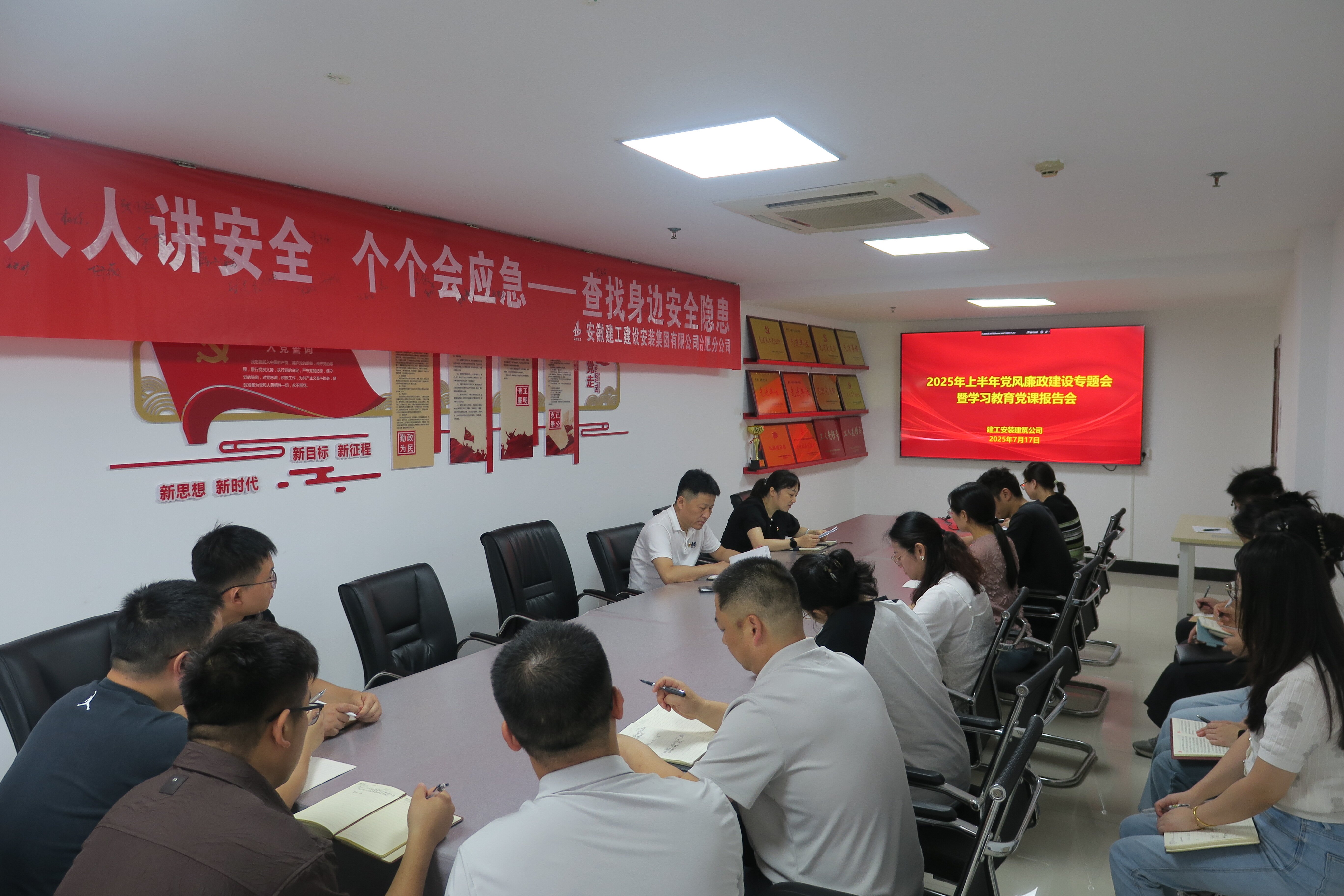 7月17日上午,建工安裝建筑公司召開(kāi)2025年上半年黨風(fēng)廉政建設專(zhuān)題會(huì )暨學(xué)習教育黨課報告會(huì ),建筑公司領(lǐng)導班子、部門(mén)負責人、各項目主要負責人、支部黨員參加會(huì )議。